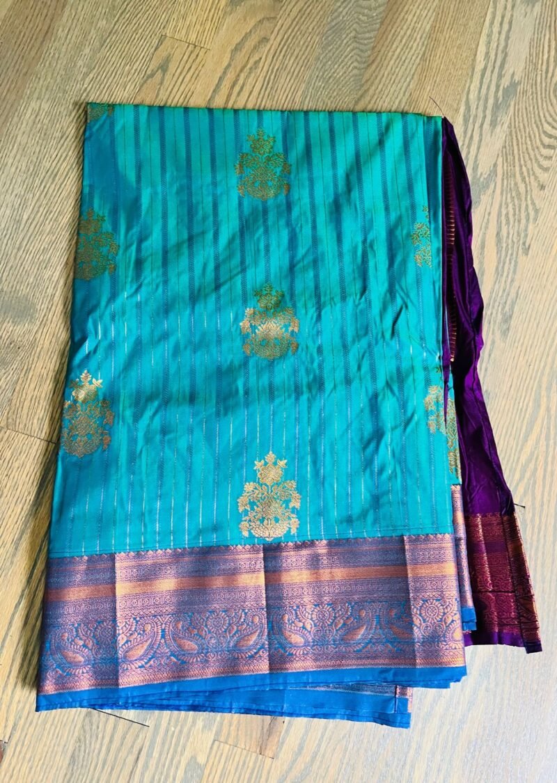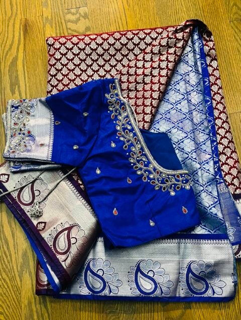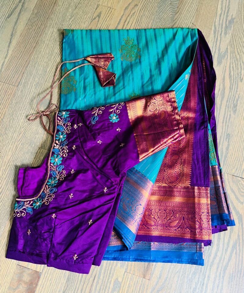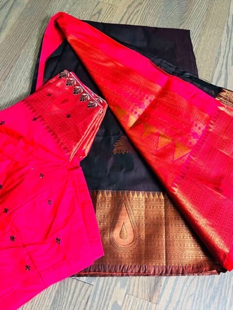 $45.00Current price is: $45.00.Soft silk sarees with stitched blouse