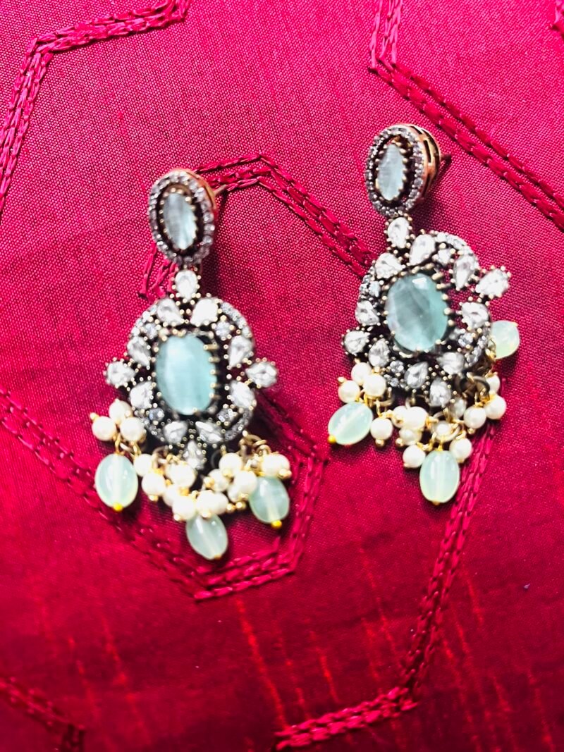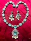 Elegant turquoise teal Victorian long haram with dazzling earrings